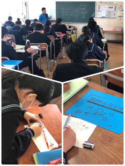 3年生の英語の授業では、「読みトレ100」の学習を行っています。
