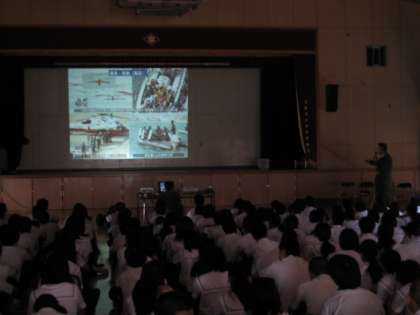 荒巻隊長からは、地震発生時には何おおいても頭を守る行動をとることを教えていただきました。また災害派遣活動では、行方不明者の捜索や瓦礫の撤去だけではなく、避難生活をされている方々の心のケアに取り組んでいたこと、街の復興に向けて様々な人が協力してかかわっていたことなどを教えていただきました。