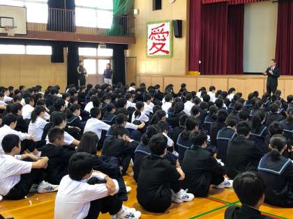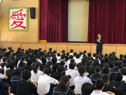 来週月曜日が「いじめについて考える日」ですが、本校では全校生徒がそろう今日、校長先生から「いじめについての講話」を行っています。