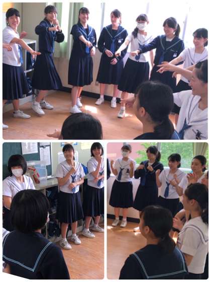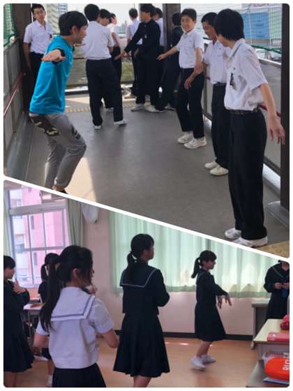 全体レクレーションで行うスタンツを各クラスで練習しています。