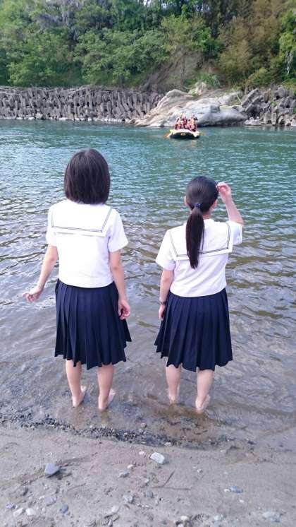 見学者も川に足をつけて川の冷たさを感じています。
