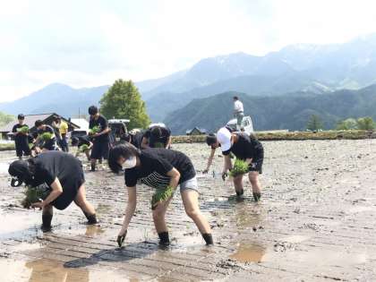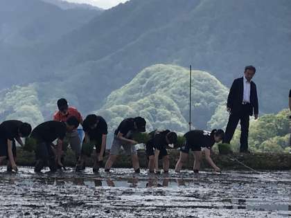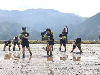 「田植えは3つの苗を植えていくのですが、1つは鳥のため、1つは虫のため、あと1つは自分たちのためです。感謝を込めて植えよう!」