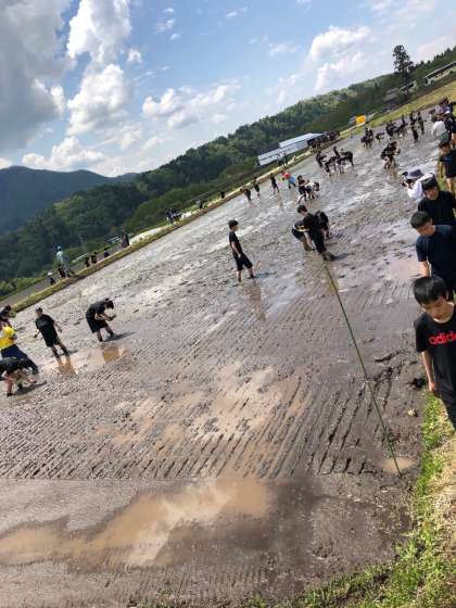 この田んぼで10kgのお米100袋分のお米が採れるそうです。心を込めて植えないと美味しいお米にならないそうです。