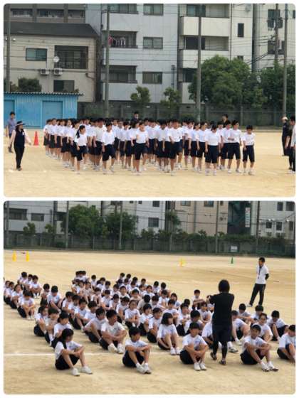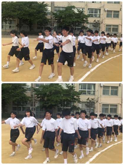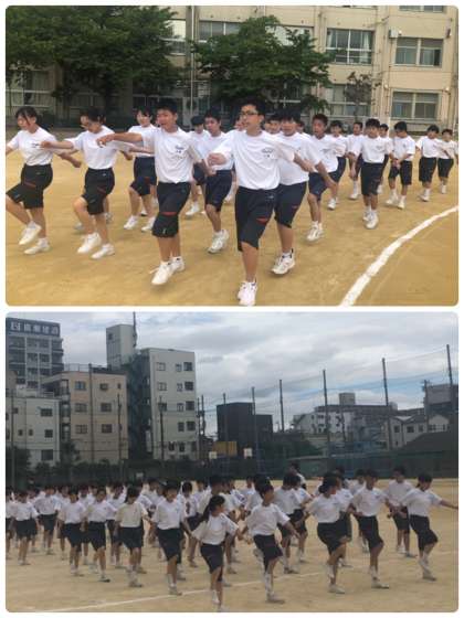体育委員の掛け声に合わせて、「1・2」と元気な声が響いています。