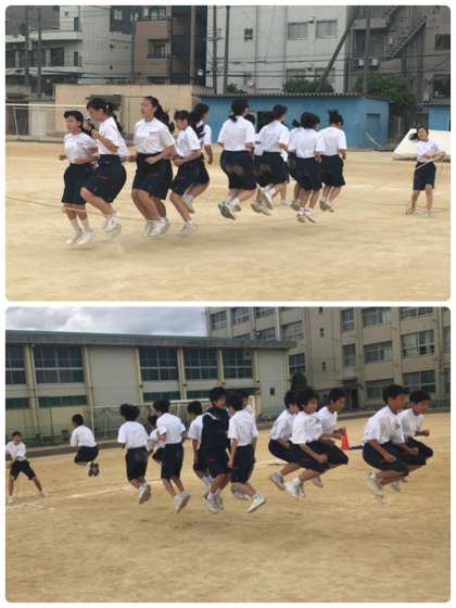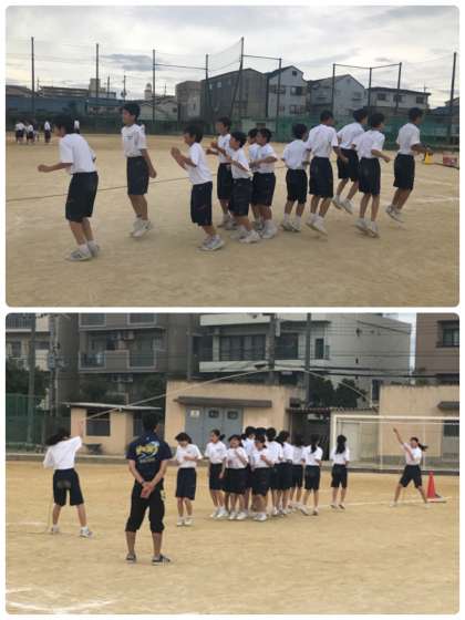 並び方や縄の回し方など、担任の先生や生徒たちからアドバイスが飛び交っています。