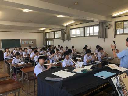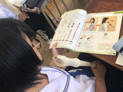 1年生の音楽の授業では、アルトリコーダーの運指の学習を行っています。