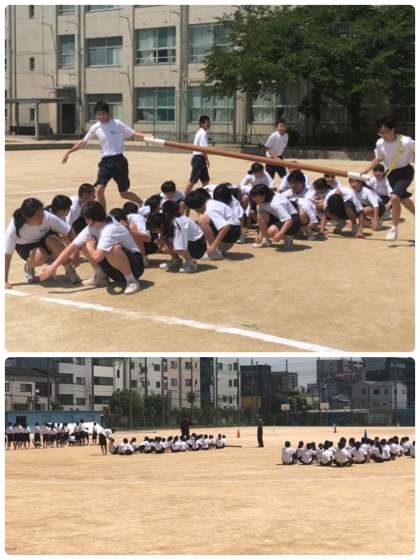 各クラスが作戦を立てながら、どうしたら早くできるか練習しています。