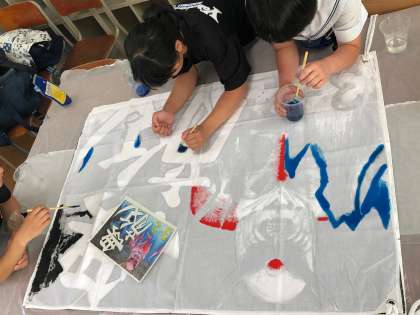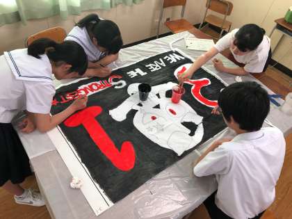 3年生は、中間テスト終了時から運動会の学級旗の製作にとりかかりました。