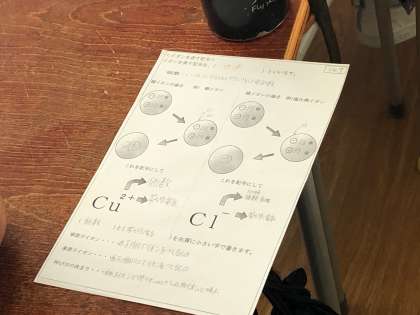 「原子の成り立ち」については、原子が電子と原子核からできていること等を学習しています。