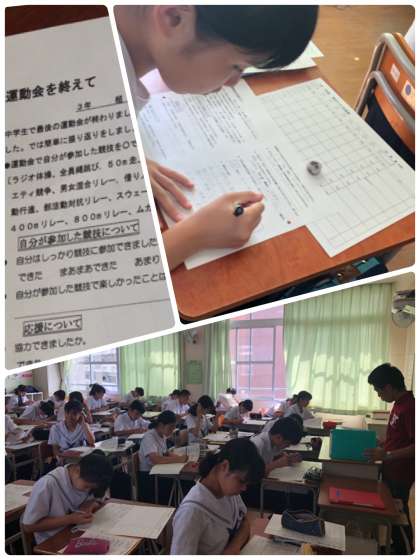 3年生の6限目は、運動会の感想とテスト計画を行っています。