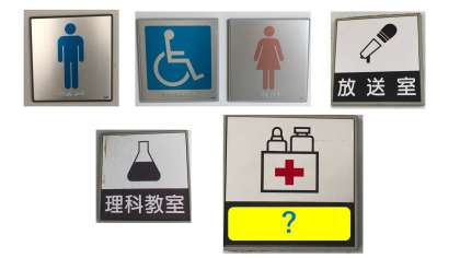 本校の特別教室の表示には、「ピクトグラム」が飾られています。