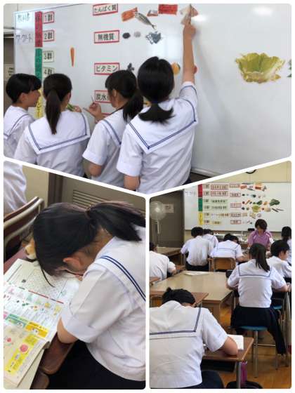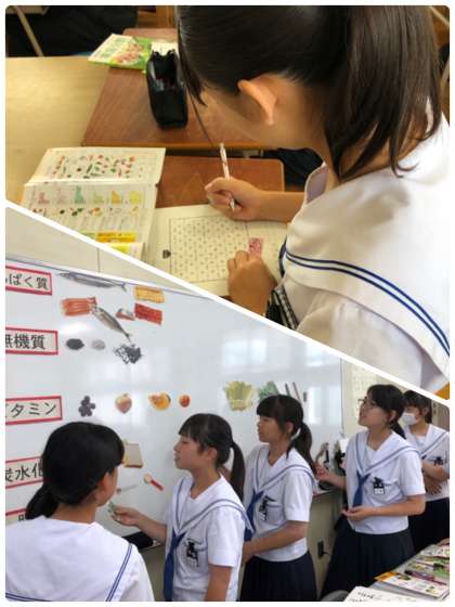 2年生の家庭科の授業では、食品と栄養素の関係を学習しています。