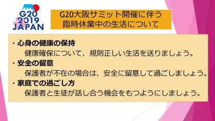 以前にお知らせしました、来るG20大阪サミット開催に伴う臨時休業のご連絡です。