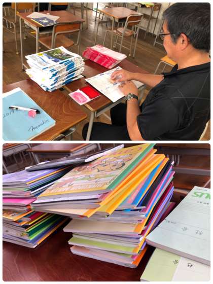昨日までの期末テストの採点や提出物の点検などを行っています。