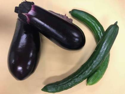 校内で栽培していた、ナスとキュウリを収穫しました。