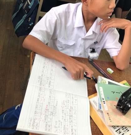 2年生の国語の授業では、文法 動詞の活用を学習しています。
