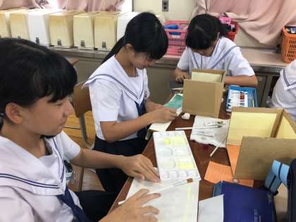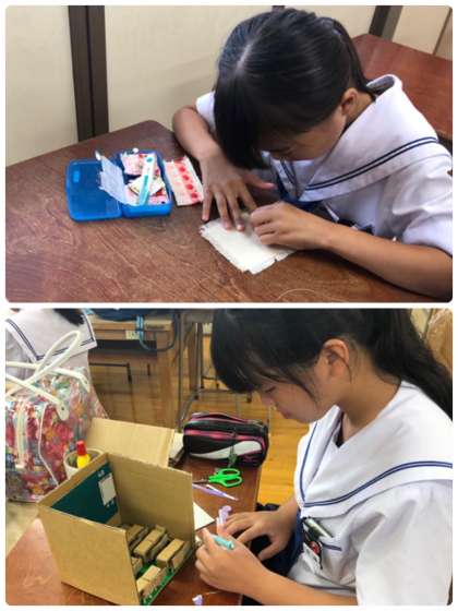家庭科部は、文化発表会に展示する作品をそれぞれに作っています。