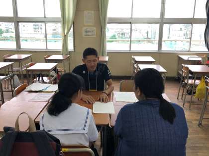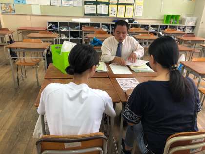 1学期の成績について、定期テストの点数だけでなく授業態度や提出物状況などをお伝えしています。