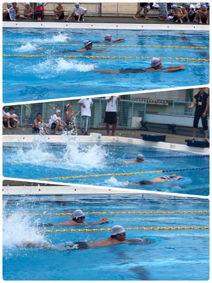 50m平泳ぎ・50m自由形・25m平泳ぎ・25m自由形・25m背泳ぎ・25mビート板