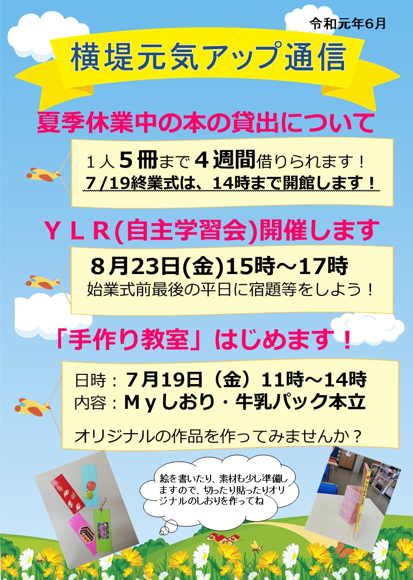 夏休みの間は、図書室の本を5冊借りることができます。
