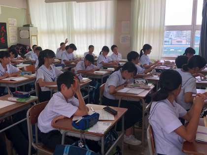 「形容詞はどんなものがあるでしょう?『〜い』で終わる言葉をあげましょう!」という発問にさまざまな答えがあがっています。