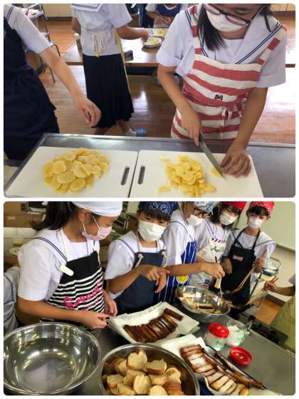 同時に洗い物をするなど、みんなで協力して取り組んでいます。