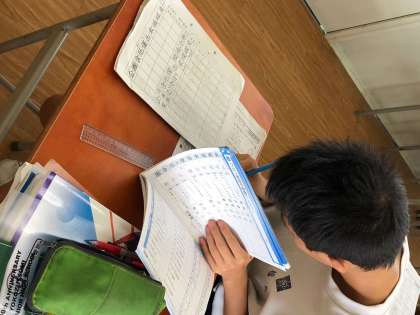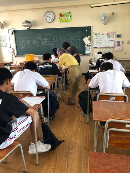 1限目は国語です。文法問題を復習しながら、理解できていないところは説明を聞いて取り組んでいます。
