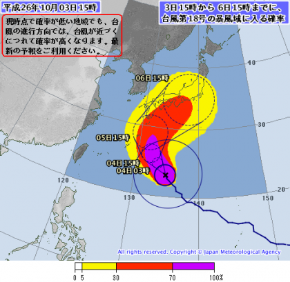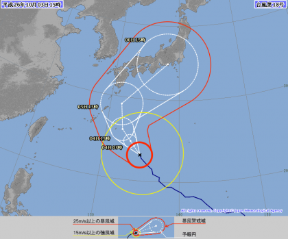 大型で非常に強い台風第18号が、日本の南を北西に進み、5日(日)、6日(月)に近畿地方に近づく可能性があります。
