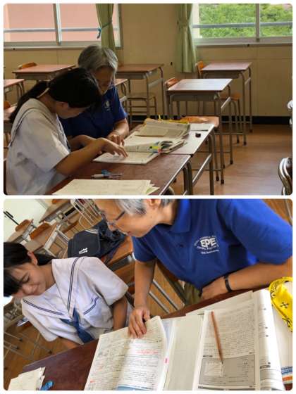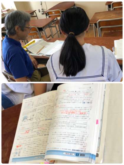 外部テストを受験して、わからなかったところを先生に教わっているようです。