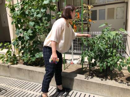 保健室前の畑で栽培している野菜も、丁寧に管理してくれています。