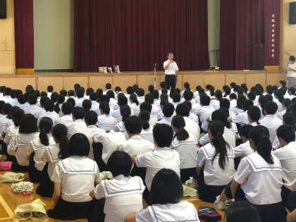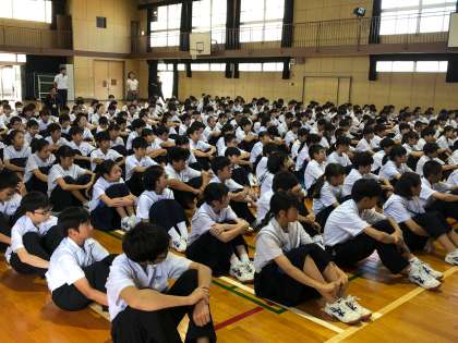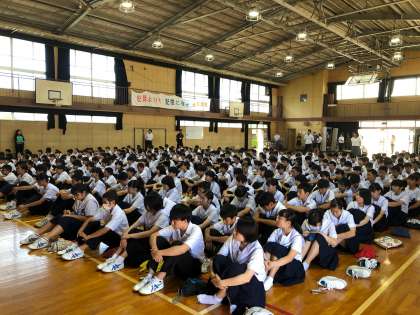 本日から2学期がはじまりました。体育館では始業式を行っています。