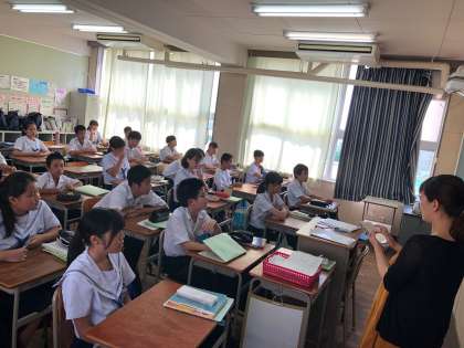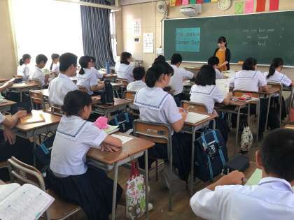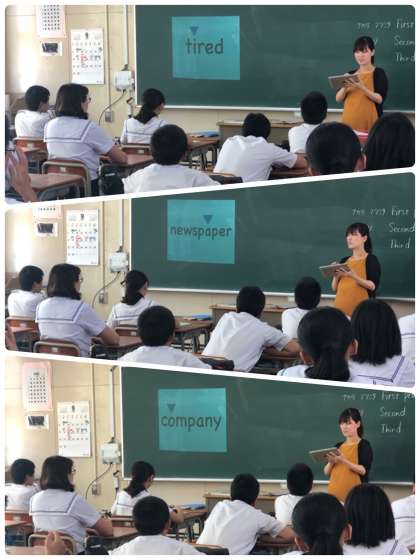 2年生の英語の授業では、これまで習った英単語を発音して、意味を確認しています。