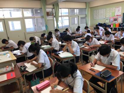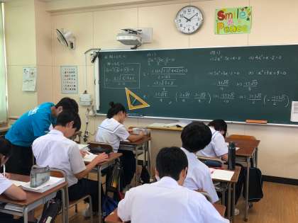 3年生の数学の授業では、「解の公式」から計算問題を解いていっています。