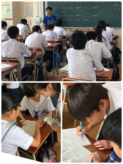日本地図を用い、話す内容や表現方法をあらかじめ固定した活動(インフォメーションギャップ型)で、できるだけ多くの生徒と交流して進めていきます。