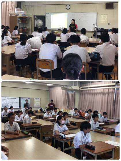 家庭科では、夏休みの課題の絵本を読み聞かせる授業を行っています。