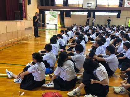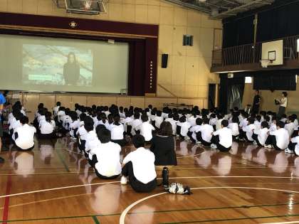 まずは、「津波から身を守ろう」のDVDを見て学習しています。