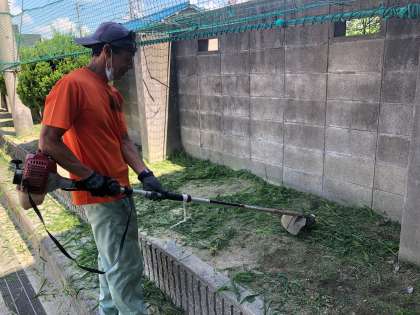 天気がよいと、雑草もどんどん成長します。生徒の皆さんが、よりよい環境で過ごせるように、管理作業員さんがいつも整えてくれています。
