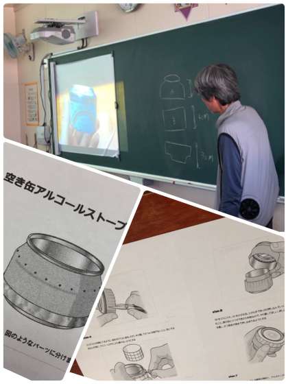 3年生の技術では、「空き缶アルコールストーブ」の製作を行います。