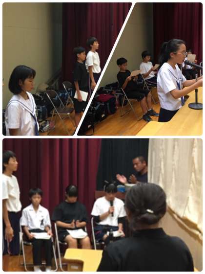 令和元年度の後期生徒会に立候補した生徒たちが、公約を演説練習をしています。