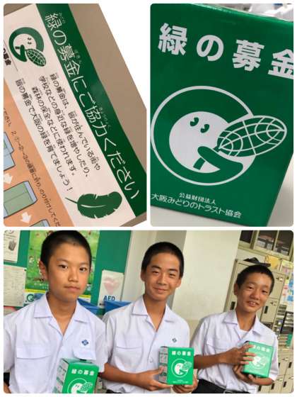 先週配付した「緑の募金」について、募金箱をもってあいさつをしてくれています。