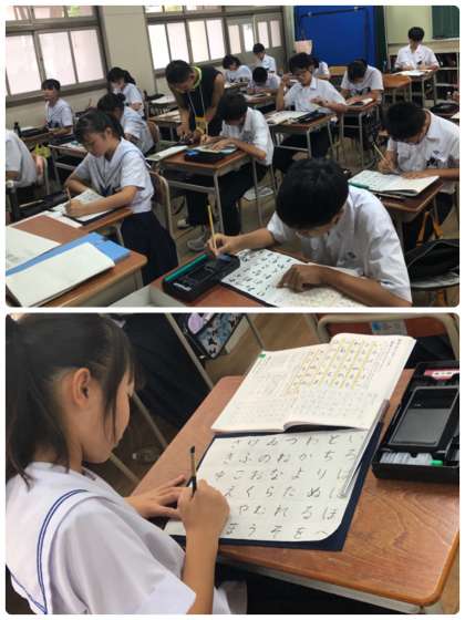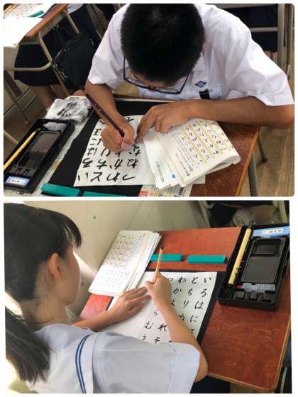 書写に関しては、漢字の行書とそれに調和した仮名の書き方を理解して、読みやすく速く書くことをねらいとしています。
