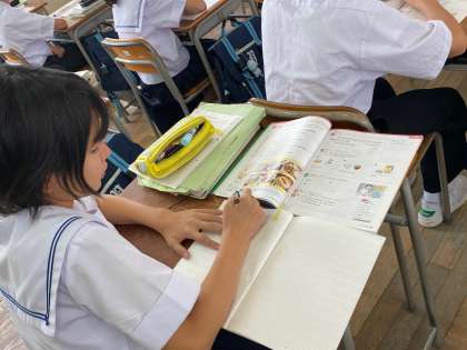 様々な方法で音読をさせ、授業の中で何度もそして楽しんで音読できるように工夫しています。