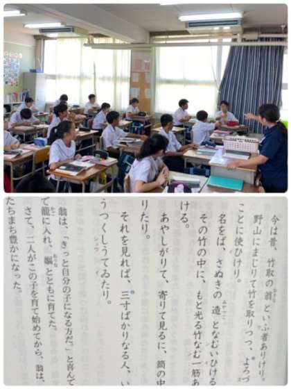 1年生の国語の授業では、竹取物語冒頭部分の暗唱を学習しています。