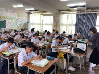英語を自然に聞けるようにするために、先生がEnglishを使って授業を進めています。
