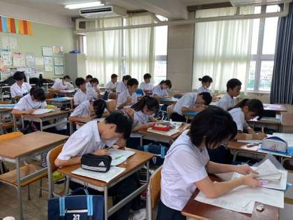 2年生の6限目は、中間テスト計画とテスト勉強をしています。