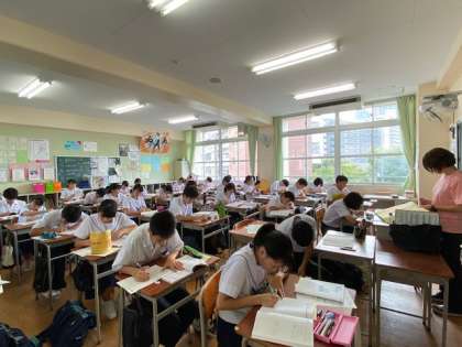 3年生の6限目は、中間テスト計画と自主勉強を静かに行っています。