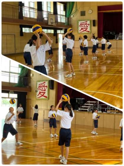 女子は、バレーボールの学習を行っています。
