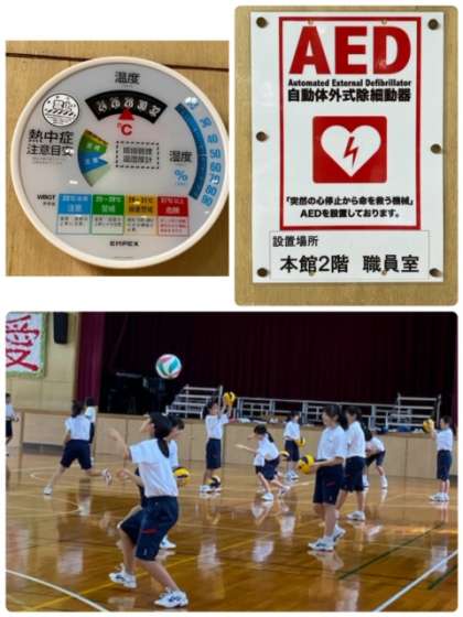体育館に新たに「環境管理温湿度計」を設置しました。温度と湿度で熱中症注意目安がわかります。生徒たちの体調管理に努めています。