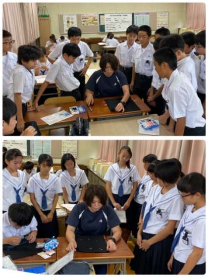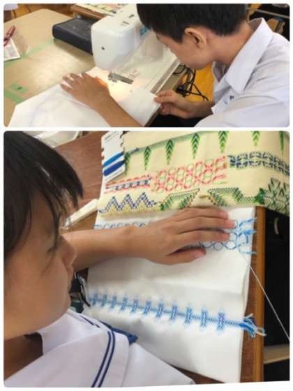 2年生の家庭科の授業では、スウェーデン刺繍の作品が仕上がってきています。