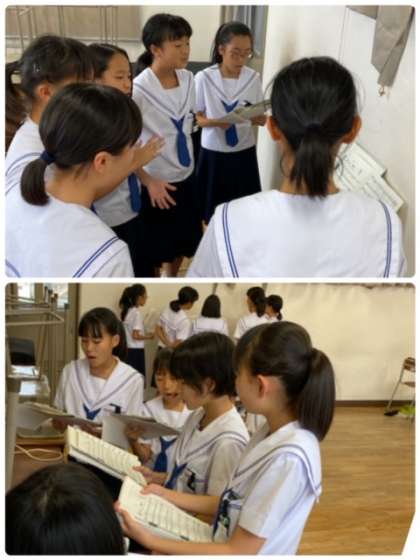 合唱コンクールの自由曲を、各パートに分かれて歌っています。